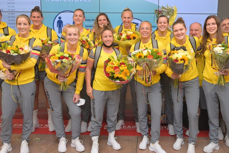 Op twitter is ophef ontstaan rond een fragment uit de livestream van sporza over de aankomst van team belgium, waaronder vrouwelijk basketbalteam de.